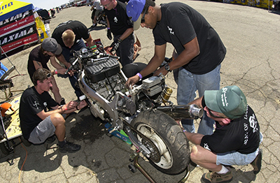 Halt! Hammer drawer! Often the humble beginnings of an endurance team involve bashing on the motorcycle with a big hammer during a pit stop while yelling incoherently at one’s teammates. This could be one of the major attractions for people who are considering jumping into the endurance pond. We still have the big hammer, but things have to be bad (i.e. bashing out the inside of a gas tank, hoping a) it doesn’t explode, and b) it might be fixed enough to hold gas) for it to come out of the drawer.