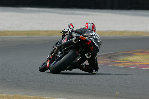 The problem with high entrance speeds is it is sometimes difficult to get the bike turned and, therefore, get the throttle back on. With the RSV the limiting factor was just the front tire. The bike would willingly follow any apex I threw at it until the front tire started moving around. The flat power delivery encouraged getting back on the gas even with the bike cranked over on its side.
